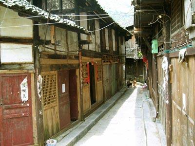 龚滩最美的是乌江水道上的建筑,凡是来过的人都赞不绝口,连著名画家吴冠中都盛赞此处是"琼楼玉宇",龚滩古镇的建筑图片更是被收录进了众多建筑欣赏图书。 龚滩古镇长大约2公里,一条青石板路贯穿其中。古镇的建筑以土家族吊角楼为主,都是木制结构,一路行去每一处建筑都各有特色:有的青瓦飞檐,屋角用精美雕刻装饰,有的回廊婉转,犹如北方四合院,有的是有的有的依地势而建,以石头垒成地基,上面盖房,下层作为贮藏室,上层作为人休息的地方,有的建在江边悬崖旁,以十来米长的数十来根大圆木作为房屋支撑,从下往上看,颇有几分"空中楼阁"的险要,再加上这种房子的地板也是用一块块木板拼接而成,所以许多外来旅客初到吊角楼都有一种担心,总害怕房子会倒塌。可事实上,这里的吊角楼最年轻的都已经有一百多年历史了,有的已经有四、五百年历史,如今依然有人安居。 历经1700年的龚滩古镇,如今依然保持着古朴的面貌,房屋大多都显得陈旧,但是庞大的建筑群落不容争辩的向所有人展示着她昔日的繁华。龚滩是重庆西部的水路咽喉,南来北往的商旅都会在此打尖住店,在龚滩最繁华的时候这里的码头每天有一两千人"捞货(从事物资交易中转)"。在古镇有一处景点叫做"杵眼",粗看恐怕看不出什么蹊跷,但是其实地上的小坑并不是天然形成,而是当年过路的商客因为交通限制,货物都只能用背篼背,走到镇上累了,就用一根木棒杵着背篼靠着休息,时间长了,过往的人多了,这地上便留下了一个个"杵眼"。顽石无语,印记仍在,留下这印记的人被称为"背老二",是专门从事背运货物的,在古镇上以罗姓先人从事这个职业的居多,听说那时侯"背老二"的血汗经常被无情地压榨和剥削,所以罗姓后人便发奋图强,不再从事这种体力活。有"龚滩活字典"之称的罗子南便是一位满腹文史诗书的饱学之士,对龚滩以及酉阳的文史掌故了然于胸,并且自编诗词剧本在当地排演。他的"子南茶座"在当地小有名气,不论是当地人还是外来的旅客都爱在这里坐坐,听他讲龚滩的故事,可以说以前到龚滩来,其中一大乐趣便是听罗老先生用抑扬顿挫的重庆方言讲述龚滩的传奇。可是几年前,罗老先生不幸病逝了。他的后人罗小波如今在镇上开了当地第一家也是唯一一家旅游公司,成了第一个吃螃蟹的人。这个旅游公司没有豪华的装修,就设在江边的吊脚楼里面,在这里不会欺客,他和他手下的员工把每一位客人都当作亲人一样对待,却绝不会眼睛只顾盯着你的钱包,这种亲切的感受在别处是绝对寻不到的。 听他们讲风俗典故,特别有趣的是天然形成的"鲤鱼跳龙门"。一块鱼形的石头突兀的横在道路边的石壁中,犹如一条正在侧身跃龙门的鲤鱼,靠河吃饭的龚滩人固执的认为这是河神的化身,是可以庇护船只出行的,所以这条"鲤鱼"受到了当地人的追捧,很多要驾船出行的人都会到这里祈求一路顺风。所以很多游客到了这里也会虔诚的拜拜这条"神鱼",大家都愿意相信这是一条有灵性的石鱼。 在龚滩有一座最不象寺庙的寺庙——三教寺。说它最不象寺庙,是因为这里没有一座神像,没有一根香烛,神殿早已经成了民居。但是人们对它的景仰还在,它依然活在当地老百姓的心中。相传三寺庙曾经是明末清初著名的巾帼英雄秦良玉的故居,明崇祯三年(公元1636年),华北永平(今唐山市)等四城失守,秦良玉率精兵北上,很快收复了四城。 崇祯皇帝在平台召见秦良玉和五百四川僧兵,准备论功行赏。赏钱赏帛,这些僧兵都婉言谢绝,赐官,大家也众口一辞的推却。皇帝问这些僧兵究竟想要什么?其中一位代表说道:"启禀皇上,我等对于官爵禄利,视之如水。但求皇上恩准,和尚可以娶妻为室,可以开戒吃荤,足矣。" 崇祯皇帝未多犹豫,便点头应允。勤王有功的僧兵回到石柱、酉阳等地之后,照常当和尚,但是,他们与别地的和尚不同的是:可以娶妻,可以吃肉。他们既信奉佛教,也信奉道教,同时对于儒家的学说也非常尊崇。因此,他们所在的寺庙,就称为三教寺。 古镇上面最气派的建筑莫过于"西秦会馆",始建于清朝光绪年间。这里曾经是龚滩人祈福,看戏的地方。高高的院墙,森严的大门,精美的檐角雕刻,彰显着她过去的气派。可是时间的流逝在她身上打下的深深烙印,使现在的她象一个迟暮的美人,自顾自怜。门上的横匾变成了"为人民服务",石雕的门联也已经被凿掉,只剩下伤疤一般的窟窿。楼梯残破不全,依稀可辩的是上面曾经富贵的枣红漆。戏台上的墙壁上还有精美的观音菩萨壁画,观音的神态还是如同当年一样安详,但是她却早已被遗忘. 不止西秦会馆,整个龚滩古镇都显得十分寂寥,时间在这里仿佛过得特别慢,慢地让人担心不久以后古镇的时光是否会彻底停滞。 龚滩旅游小贴士 1. 重庆菜园坝汽车站每天都有发往酉阳的班车,票价135元,车程12小说。酉阳汽车站到龚滩的汽车很多(面包车),车程2小时,车费20-25元。 2.可在朝天门交通广场乘重庆--彭水的长途车(扬州亚星71元、凯斯鲍尔85 元/人),所需时间5.5-6小时,晚宿彭水。从彭水--龚滩,每天只有一班车早上8点,票价二十元,所需时间3.5-4小时。 3.在龚滩住宿,可住当地客栈,10-20元左右,也有龚滩宾馆,根据房型不同,价格从40-200元不等。