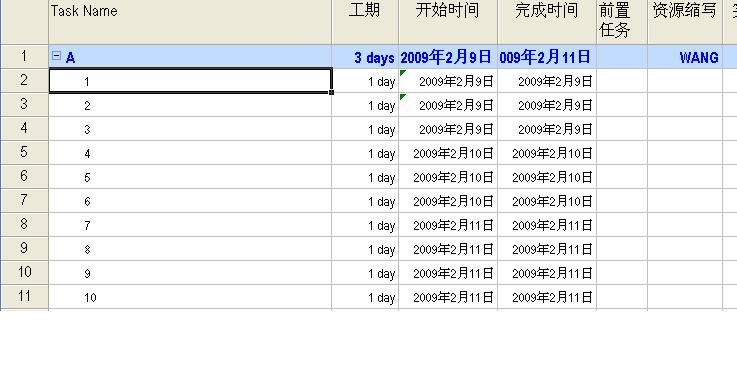 是否可以象图片中显示的一样,1---3工期用同一天标识(20090209---20090209) ? 或者是否应该标识为 ( 1 子任务工期为 0.333; 2 子任务工期为 0.333; 2 子任务工期为 0.333 ); 这两种标识法是否都正确,有什么区别? 第一种标识法是否要把各个子任务的资源都标识为 33% ?
