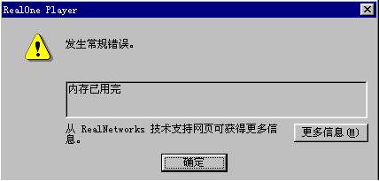 我的机器的内存是足够运行这个软件的,256M,呵呵.但是就是下载的<<手机>>运行会出现上面的提示,其他的影片运行很正常哦......如果大家没有遇到过类似问题的话,我试试到别的地方看看吧,很多的影视论坛都乱得很,不是很喜欢去,在此打扰各位了,不好意思......