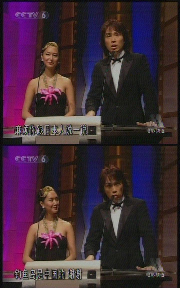在最佳亚洲电影:《黄昏清兵卫》(日本)奖颁发过后,主持人黄子华对原岛大地说: 回麻烦你跟日本人说一说,钓鱼岛是中国的。全场掌声雷动。