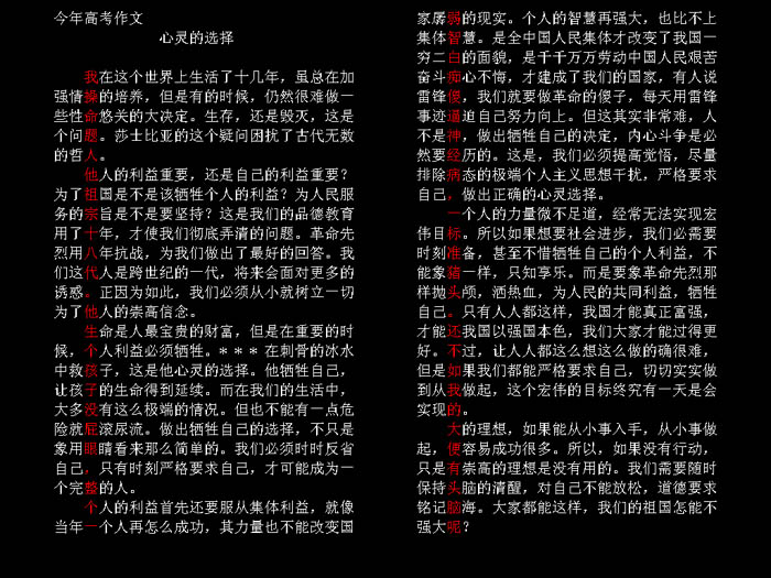 Re:[贴图] 以前发的高考作文,大家再看看 [回复于 2004/6/28]