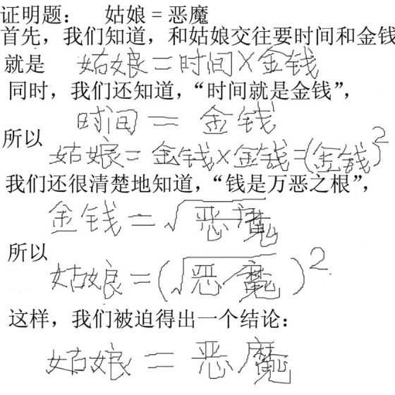 经典,得出:婚姻=男人+女人=爱+色+时间+金钱