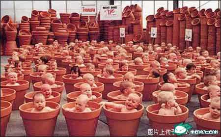 那些孩子为什么坐在花盆里???电脑合成吧?!