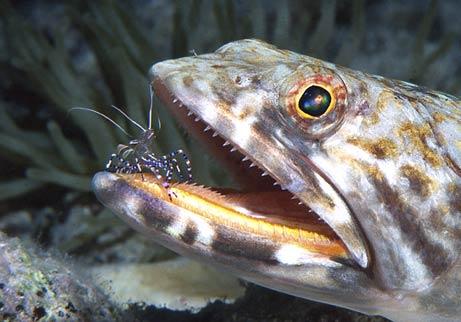 狗母鱼张开了它那宽宽的大嘴,让一只小虾为它清理牙齿 照片上,一条面目丑陋的大鱼似乎正要终结一只小虾的生命,但事实上,这张在2005科学幻想摄影奖上获奖的照片要向人们说明的只是自然界中的一种共生现象。 摄影师吉姆·格林非尔德(Jim Greenfield)是在荷兰安的列斯群岛的古拉索岛海岸下拍摄到这张照片的。照片上,一只狗母鱼张开了它那宽宽的大嘴,让一只小虾为它清理牙齿。 这张照片击败了其他众多竞争者,成功获得了今年科学幻想摄影奖情景类的最高荣誉。