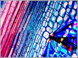 “植物茎干上的蝴蝶(Butterfly on a plant stem)/年轻摄影师奖 16岁及以下。作者:雷切尔·希尔库克(Rachel Shillcock)。 这张照片向人们展示了一株向日葵茎干上的多孔结构,其中包括红色的脉管区域和蓝色的支撑组织。这种系统的规律性和旁边一只蝴蝶的大体轮廓形成了对比。